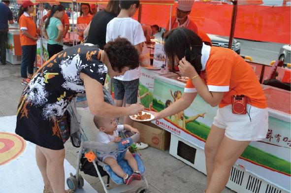 活動(dòng)時(shí)長(zhǎng)大約30分鐘,首先快閃人員在王府井南昌路店門口廣場(chǎng)中央集合,穿戴著簡(jiǎn)單大方、整齊利索的衣物四處游走在人群中。時(shí)間一到,音樂響起,歌手慢慢走近中央,一首振奮人心的“我和你”拉開整個(gè)活動(dòng)的序幕,瞬間引起了在場(chǎng)所有人群的關(guān)注。緊接著舞蹈演員閃亮上場(chǎng),展開了一場(chǎng)激情澎湃的機(jī)械舞,帶動(dòng)現(xiàn)場(chǎng)觀眾情不自禁參與到表演中來,此時(shí)人流迅速聚攏,引起圍觀。然后正大食品有限公司員工身著公司服裝,唱著正大集團(tuán)《愛是正大無私的奉獻(xiàn)》一起出現(xiàn)在廣場(chǎng)中央,隨后幾段歌舞串燒將現(xiàn)場(chǎng)氣氛推向***,在觀眾意猶未盡之時(shí)迅速閃開在人群之中?;顒?dòng)過程中穿插進(jìn)行了分發(fā)公司宣傳材料、食品安全知識(shí)宣傳單,現(xiàn)場(chǎng)觀眾品嘗了洛陽正大豬肉調(diào)理品、醬鹵產(chǎn)品及集團(tuán)現(xiàn)代食品。